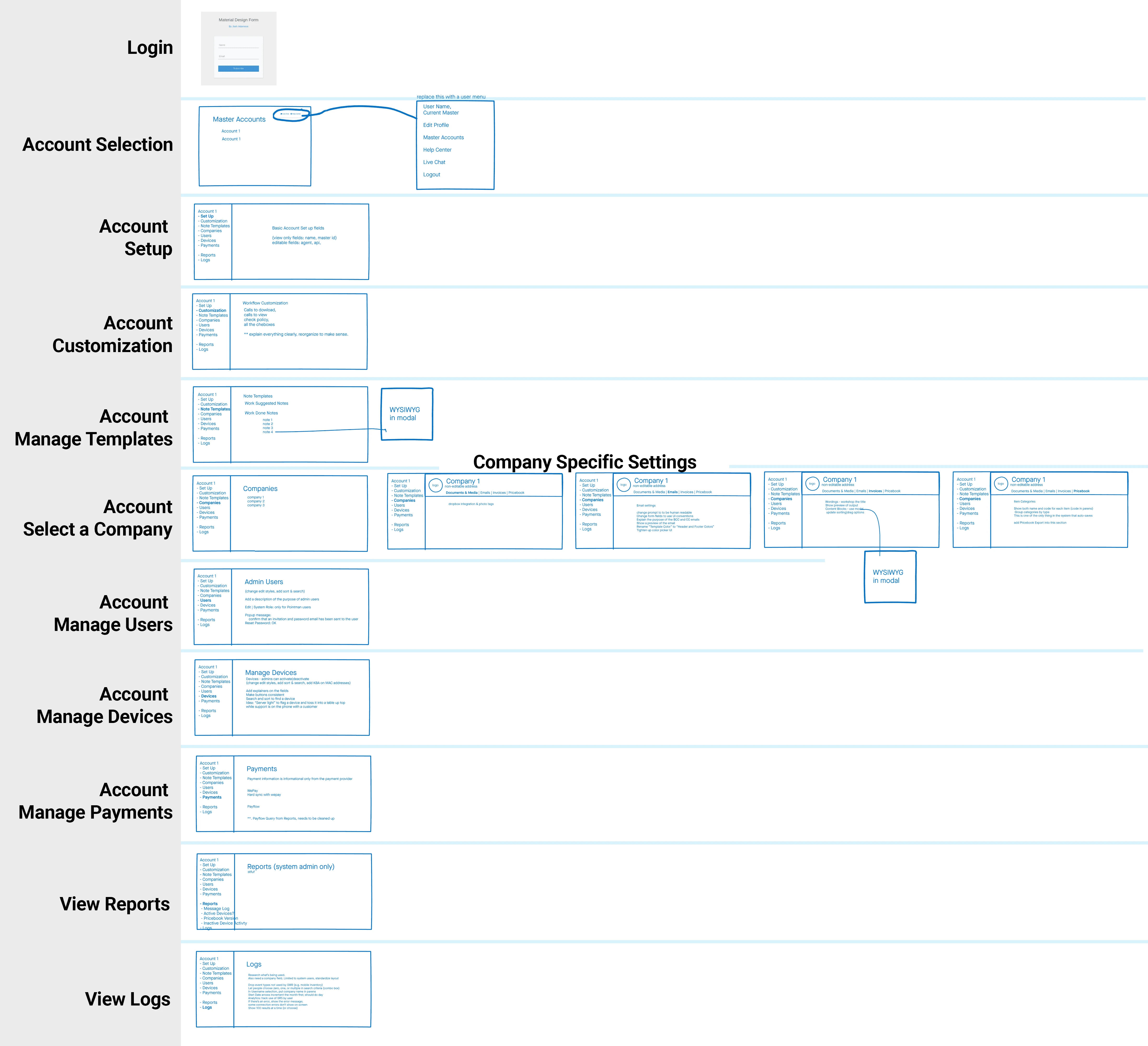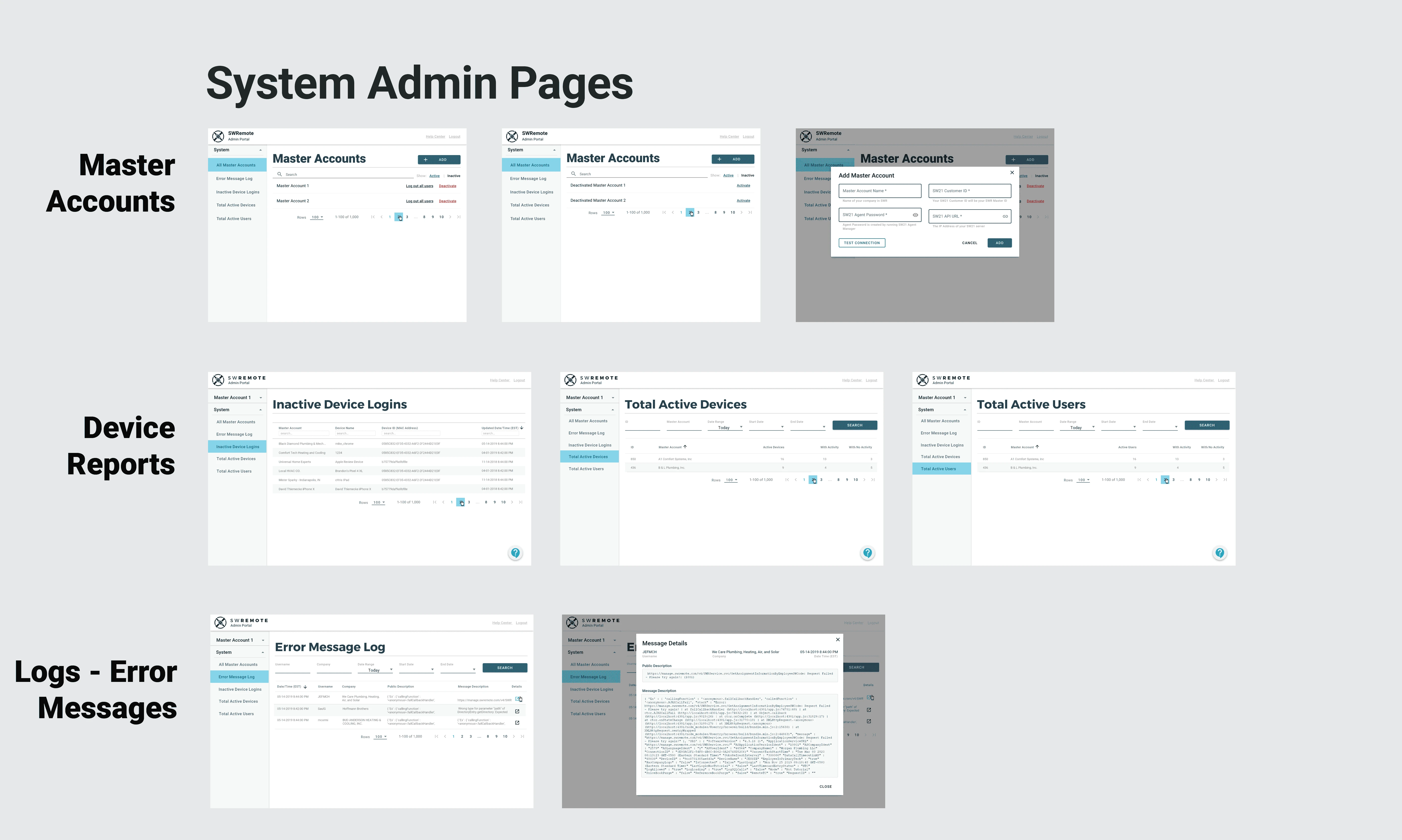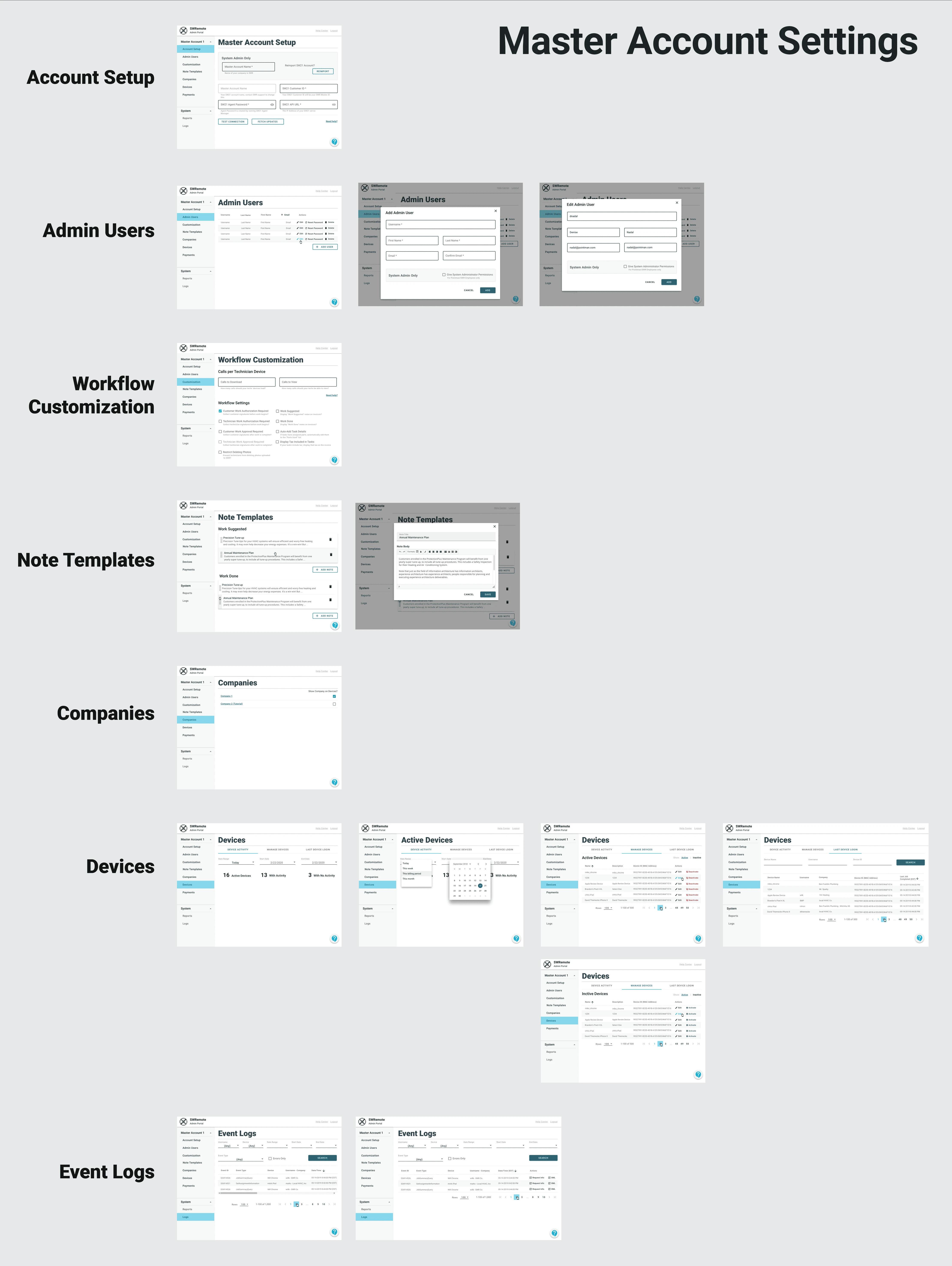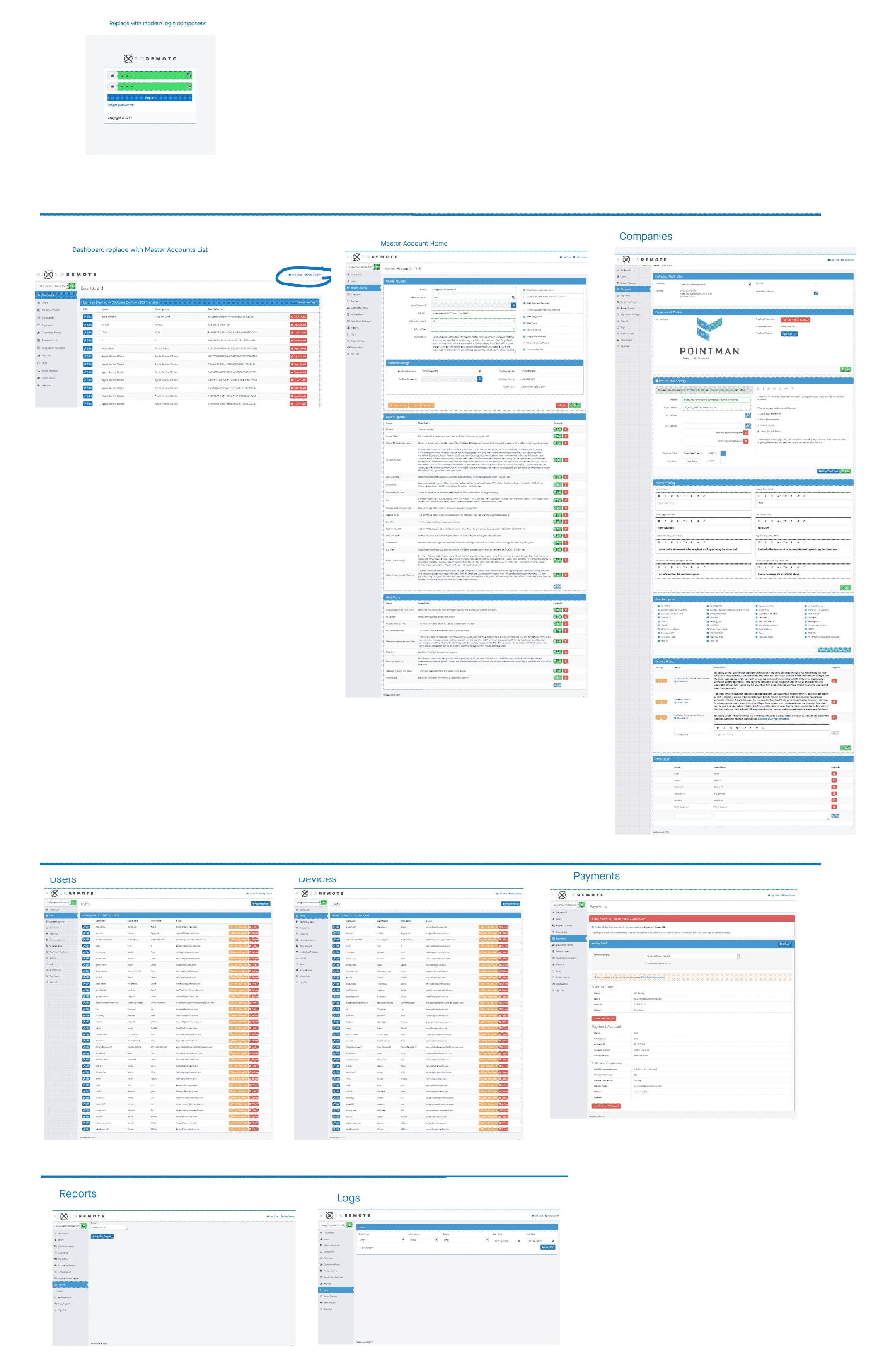Redesign of a system administration site for SuccessWare Remote, a mobile app for the HVAC technicians in the field. This site was primarily used by the Pointman support team and account administrators for SWR customers.