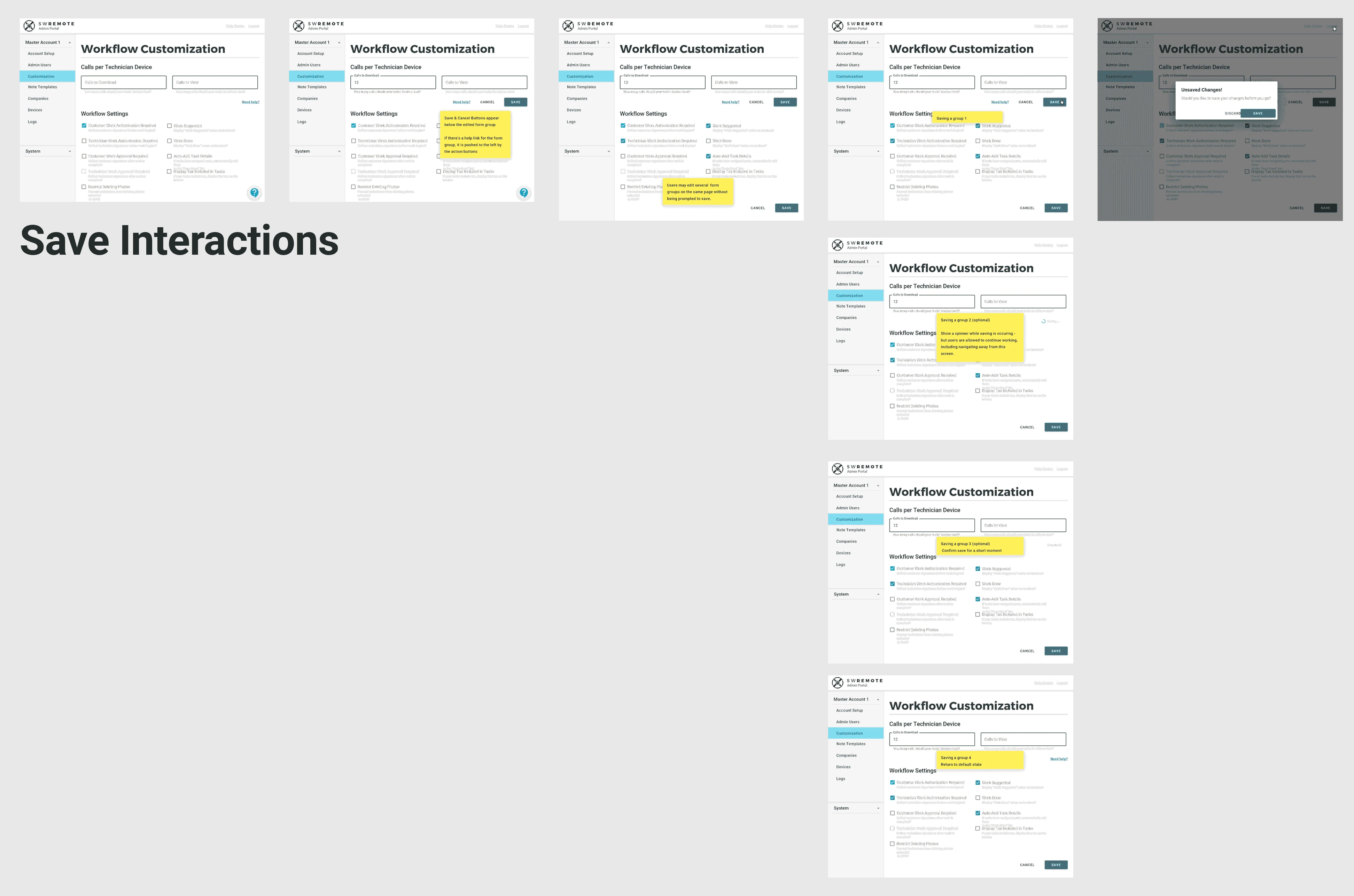 I also created a walkthrough of how I expected save interactions to work throughout the system, so the engineers would know how to start programming saving interactions in their component design.